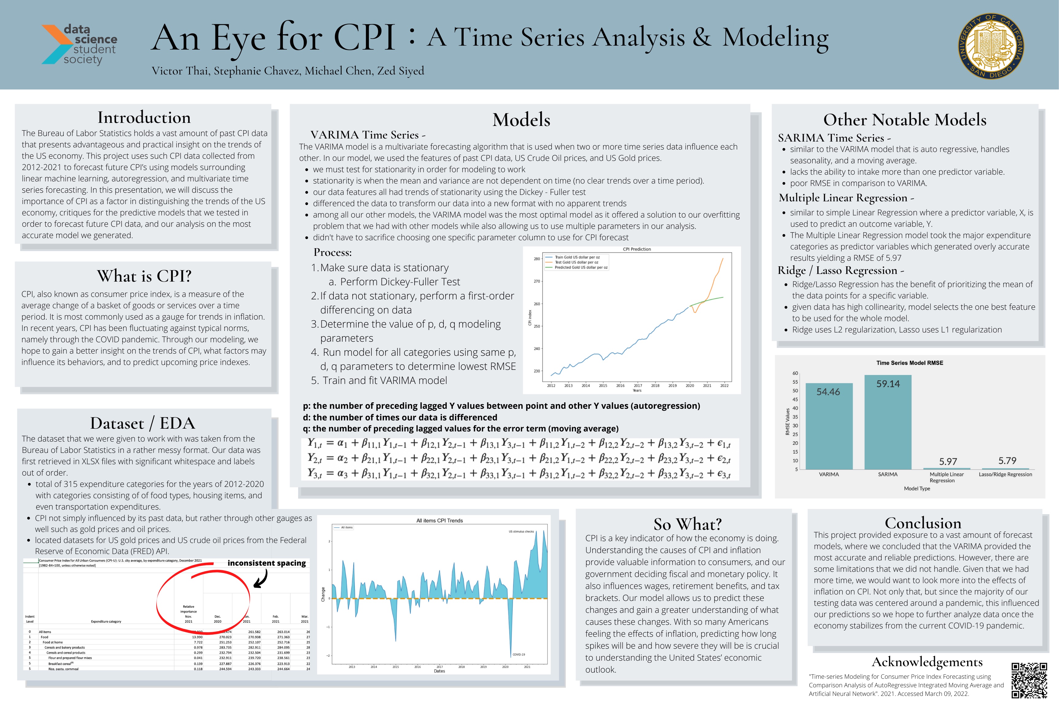 This project dives into the importance of Consumer Price Index, CPI, as a factor in distinguishing the trends of the US economy. Through creating predictive machine learning models, we generate critiques for how accurate these predictive models are in order to forecast future CPI data.
