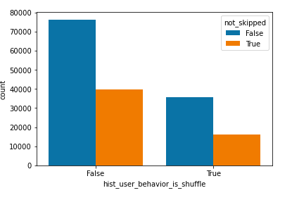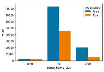 the users preference. As shown in these barplots, pause behavior, shuffling behavior, and whether